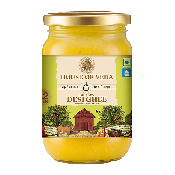 Made with A2 milk which is rich in protein & easy to digest, House of Veda Gir Cow Ghee is 100% Pure. It is crafted using 5000 Years Old Ayurvedic Bilona Prakriya to retain its nutrients. It improves appetite, helps boosting memory, and strengthens body.