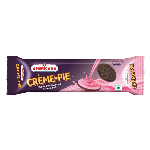 Americana biscuits come with a distinctive and unique bubble gum crème pie nestled between delicious dark chocolate crunch to satisfy your sweet tooth. The irresistible taste of our crème pie is perfect to match any mood and will surely give you a bubbly remembrance of your childhood. Relish this mouth-watering delight with friends and family!
