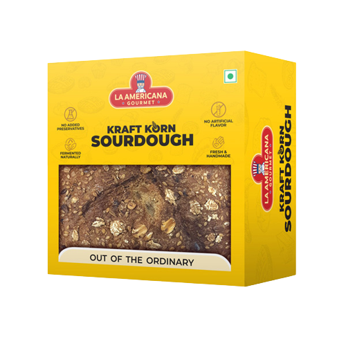 'Kraft Korn sourdough is a naturally fermented and true artisanal bread made with a mix of cereals and seeds. Crafted in small batches with time and care, LA Americana sourdough has a distinct taste with no added preservatives and artificial flavours.