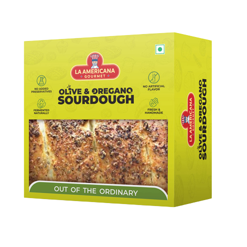 'Our Olive and Oregano sourdough is hand-crafted and fermented naturally to give it that extra softness. It has a light flavour complements salads, cheeses, and other foods. Mellow and savoury, this olive and oregano sourdough is made without any added preservatives and artificial flavours.