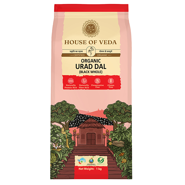Organic Urad Dal Black Whole Leave a comment Organic Urad Dal Black Whole House of Veda Organic Urad Dal is sourced from the best organic farms in India. Our Urad Dal is organically grown and processed and contains protein naturally. The processing of our dal ensures a superior quality and authentic taste.