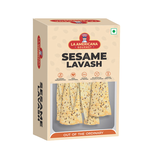 Get ready to include this out-of-the-ordinary tea time snack in your bakery bucket list. The aromatic Sesame Lavash from La Americana Gourmet is dusted with sesame seeds to make it well worth your time. The strong aroma of toasted sesame and crunchiness of the cracker bread will be loved by all in the family. This delectable crispy Lavash is packed with the goodness of protein and has a longer shelf life. It comes with no added colors or preservatives making it a heavenly appetizing choice for the family. Pair it with mild cheese and get a balanced flavour for your snack time!